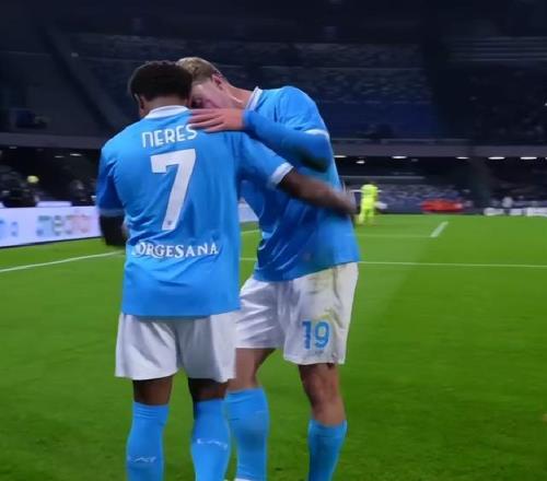 比赛进行到第17分钟,场上僵局就被打破。霍伊伦德边路直塞,内雷斯狂奔插上拿球,随后内切杀进禁区,最终推射破门,那不勒斯1-0领先。