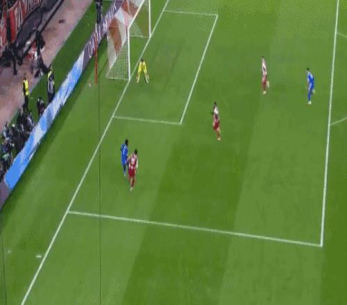 第22分钟,皇马踢出犀利反击,威尼修斯左路长传,姆巴佩单刀推射,打穿措拉基斯的小门,为银河战舰扳平,1-1!第24分钟,阿诺德右路做球,居莱尔转身起球传中,姆巴佩抢点头槌建功,2分钟内梅开二度,皇马迅速反超,2-1!