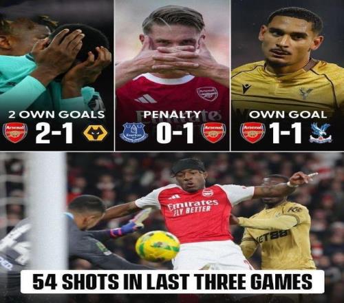 阿森纳艰难晋级的背后,揭示了一个令枪手球迷不安的数据。枪手在最近三场比赛中,球队在进攻端共有54次射门,却没有一次转化为运动战进球。虽然这三场比赛,阿森纳都成功笑到最后,但是能赢球都是得益于对手的乌龙大礼。现在的阿森纳,已经被媒体和球迷戏称患上了“乌龙依赖症”。