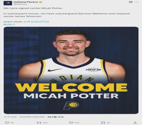 北京时间12月27日,步行者122-140不敌凯尔特人。赛前步行者宣布:球队正式签约中锋米卡-波特。为了给米卡-波特腾位置,步行者不仅裁掉了后卫加里森-马修斯,还跟中锋詹姆斯-怀斯曼解约。12月20日,步行者刚签下怀斯曼。